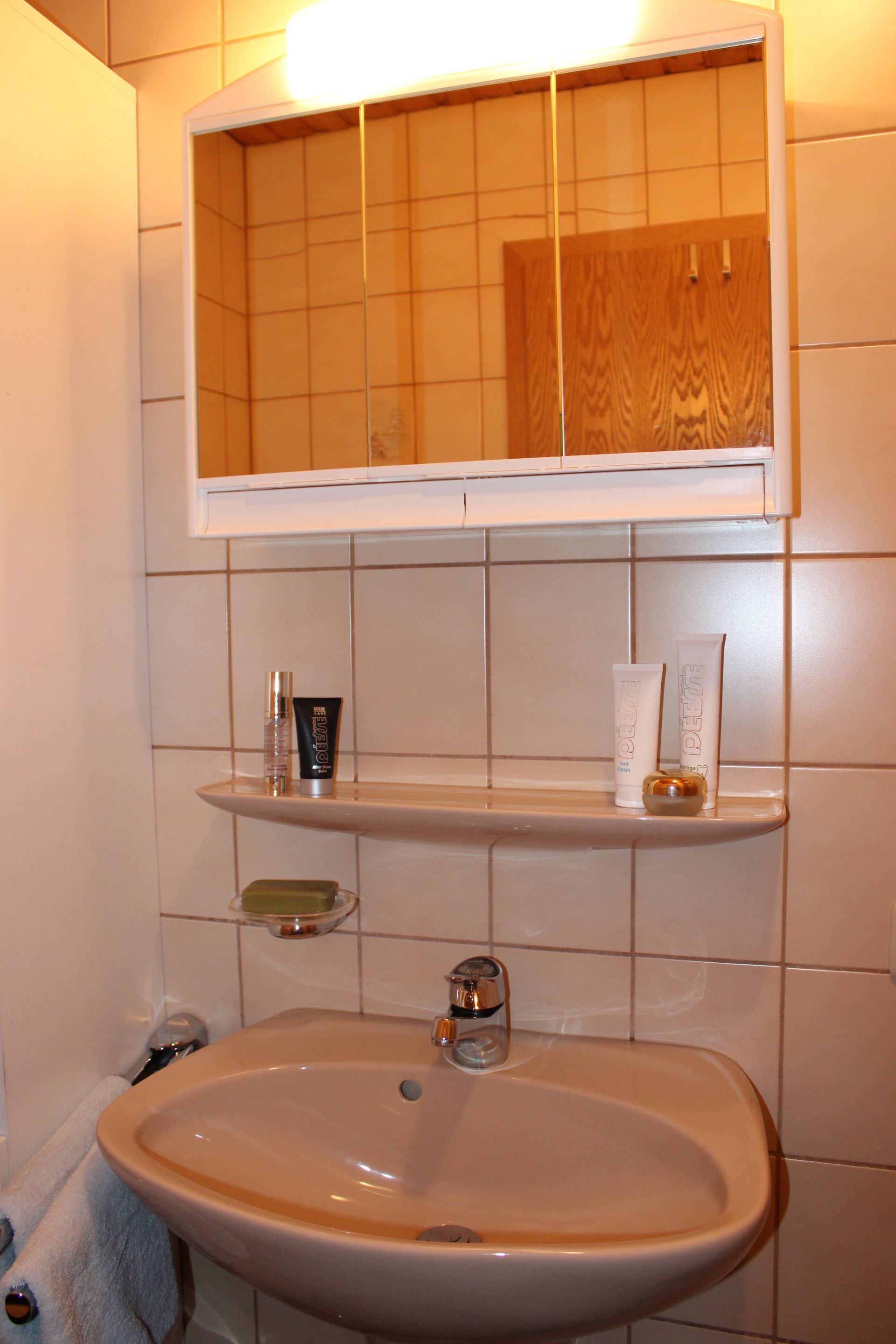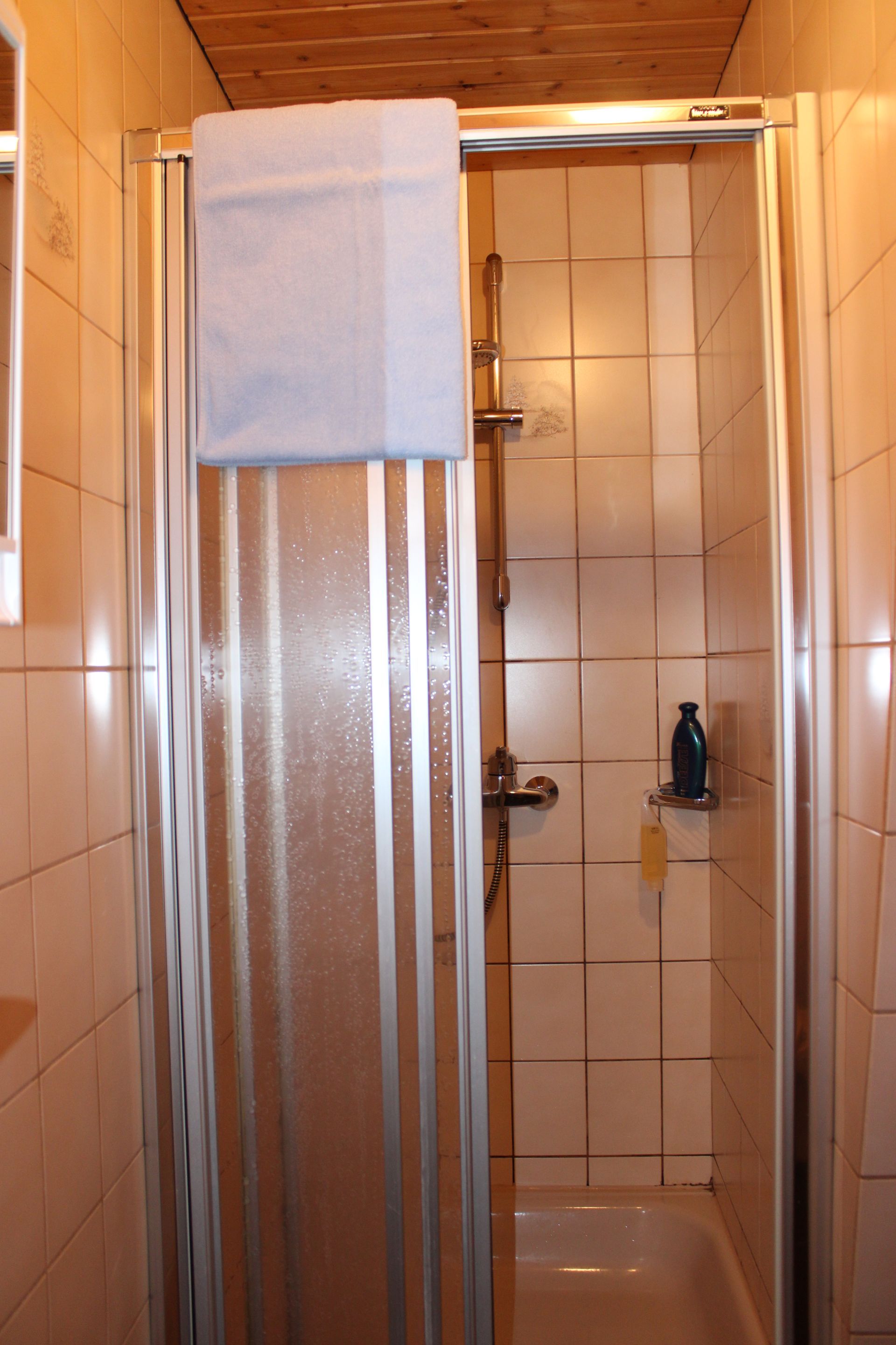 Das Bad verfügt über eine Dusche & WC.